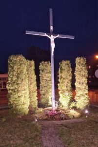 • Baznīcas dārzā ir uzstādīts atjaunotais krusts. Ir apgaismota baznīcas fasāde, jaunais krusts, kā arī Dievmātes figūra.